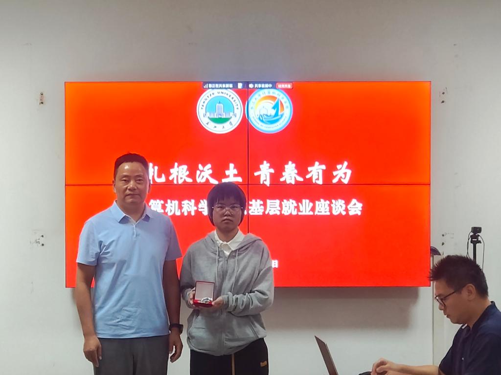 座谈会伊始,成年人电影 副院长詹炜为活动致辞,他饱含深情地阐述了基层就业的重要意义与发展方向,为在场学子点明奋斗方向。随后,进入“金骆驼”代表颁奖环节,学院党委书记郑健为荣获该称号的基层就业先锋颁奖,表彰他们用行动诠释担当、用奉献书写青春的精神。
