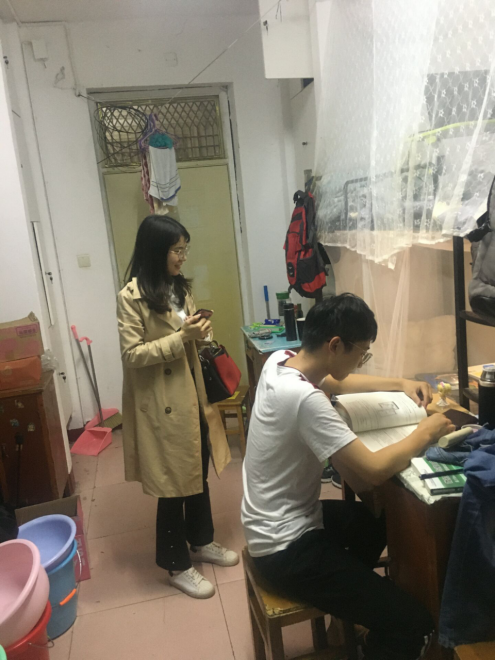 本次检查覆盖全体本科生和研究生寝室,分东、西校区同时进行。颜学俊书记在西校区带领一年级辅导员走访新生寝室,与新生交流,了解新生学习生活适应情况,提醒新生注意宿舍用电、防火、防盗等安全事项。