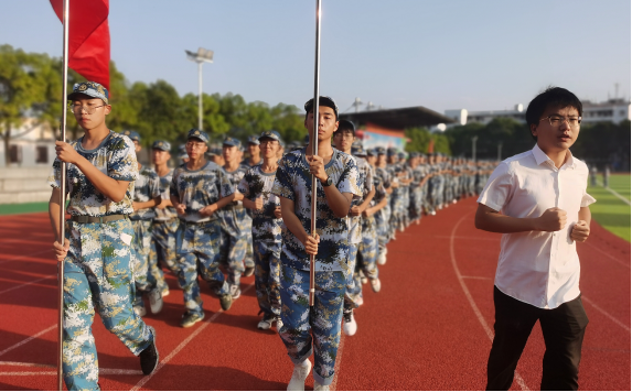 仪式第二项,学生代表——计科类32110班的王鑫锐同学作国旗下讲话。他分享了军训期间感受,讲述自己进校以来的变化。然后呼吁同学们努力学习、拼搏进取,希望同学们都能把握青春,不负韶华。