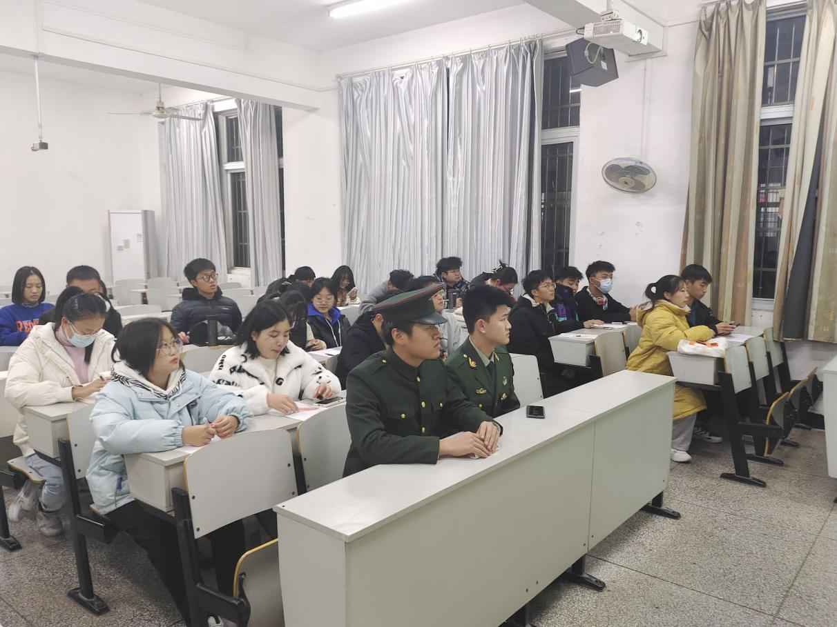 “青春有很多种样子,很庆幸我的青春有穿军装的样子。”携笔从戎,军营书写无悔青春;立志从军,军营锤炼英雄本色。为进一步激发学生的报国热情,征集更多高素质兵员,我院分别于1126日和122日在东区5501和西区7105开展征兵宣讲会,引导学生积极响应国家号召,投笔从戎,献身国防。学院征兵专干高滢、各班学生代表及有意向参军学生参加了会议。