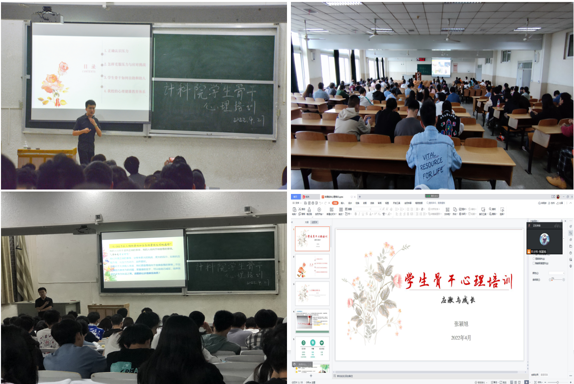 由学院心理专干教师张颖旭组织,利用线下线上相结合的方式,顺利开展学院全年级学生骨干心理培训,线下培训地点分别为西校区5号教学楼103教室以及东校区12号教学楼202教室,共计近600名学生干部参与了此次培训。