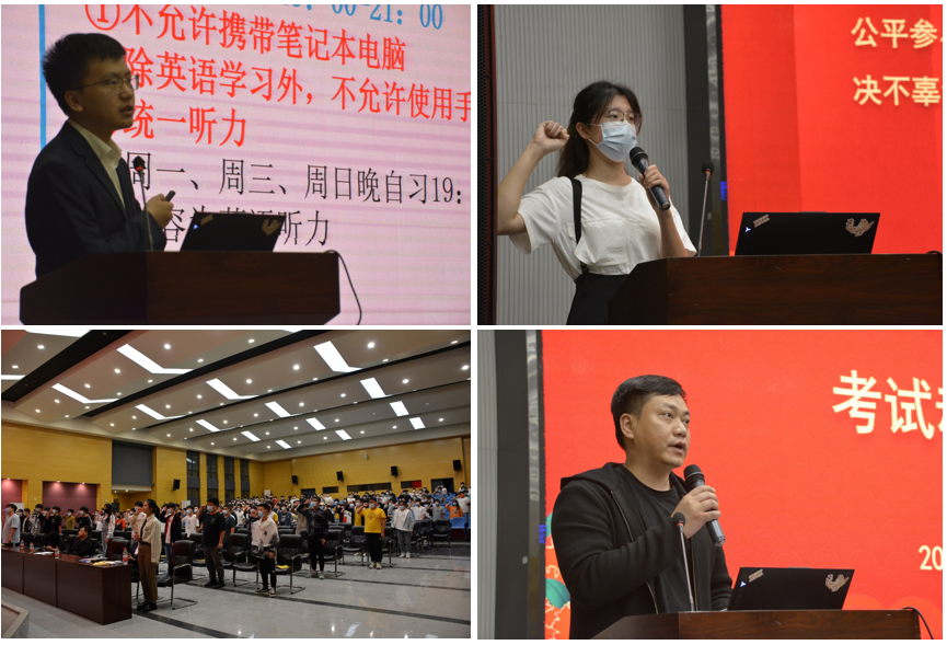 西校区农科大楼1058报告厅召开了英语四级动员大会。学院党委副书记颜学俊、外国语学院教师何赟、21级专职辅导员张颖旭、兼职辅导员高小梅以及21级全体学生参与了此次大会,大会由21级辅导员张颖旭主持。