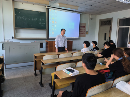 班主任首先向同学们讲解了学校的放假时间安排和国庆期间的教学计划。然后又分别讲解了疫情防控、防诈骗、防溺水等安全注意事项和心理健康教育。最后为同学们讲解了当前的考研与就业形势,希望全体同学都能绷紧一根弦,珍惜大学时光,做好职业生涯规划,不要虚度韶华。新生辅导员郭帅老师对2022级新生提供学习和生活上的指导,帮助新生积极适应大学生活,合理制定学习目标并将计划付诸行动,努力成长为一名优秀的长大学子。