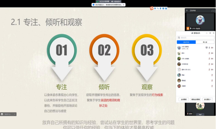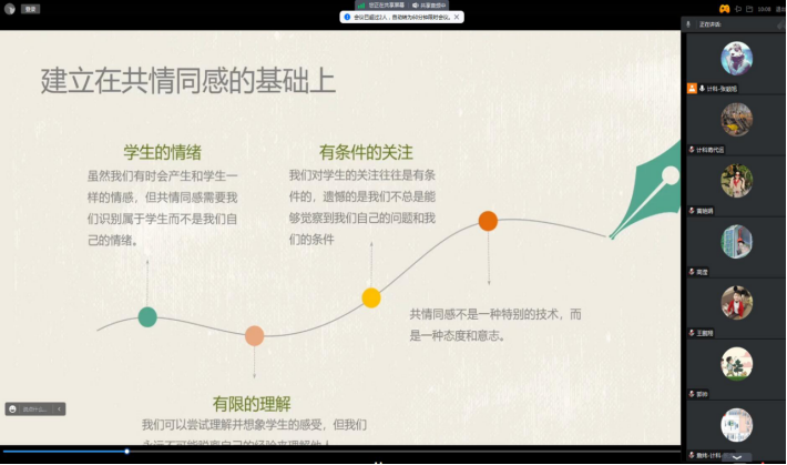 观看结束,心理专干张颖旭分析了学院2023年秋季心理访谈数据,着重讲解了心理访谈工作的原则、要求及相关材料的填写规范。至此,此次培训会议圆满结束。