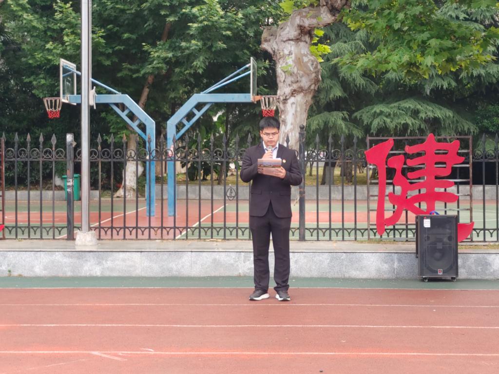 于东校区田径运动场举行升旗仪式,学院东校区全体辅导员和本科生、研究生参加,升旗仪式由计科12203班彭金苗主持。