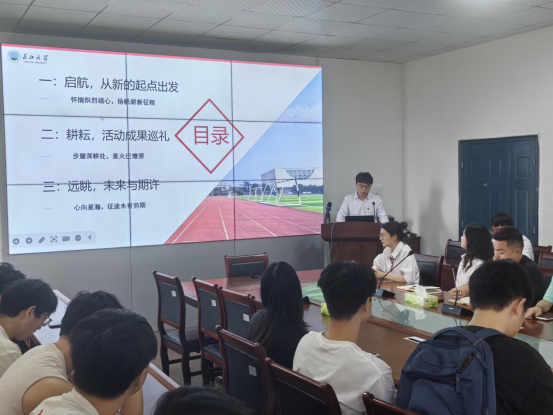 24届团委学生会执行主席陈智成对2024-2025年学生会的工作进行了汇报,他总结了这一年以来学生会所举办的活动并指出了当前存在的问题,也表达了对学生会未来的规划。随后,24届研究生主席林沐雨对研究生会工作进行了汇报,介绍了研究生的政治理论学习模式、研究生会举办的体育活动,他希望以后能有更多的人参与进来,将研究生会越办越好。