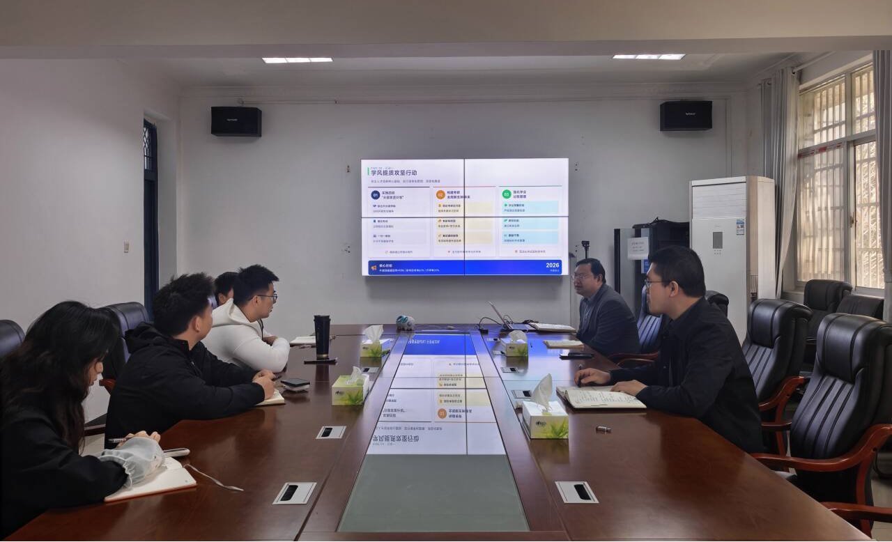 学工办主任付盈回顾总结2025年学生工作成效,分析存在的短板,明确2026年工作思路与方向。与会人员聚焦学风建设、考研就业、科创育人、品牌打造等重点议题,交流工作思路、分析问题短板、研提优化举措。会议进一步对毕业生考研帮扶、日常管理、学风营造、四级通过率提升等任务细化分工、明确时限,推动各项工作落实落地。