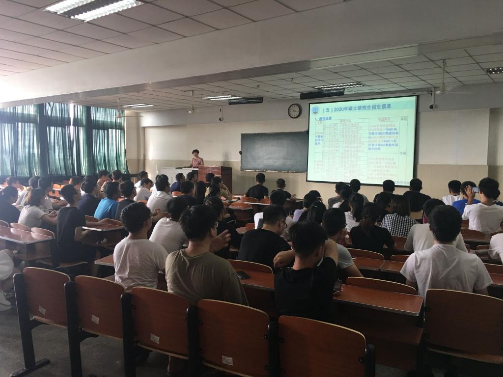会上,崔艳荣院长从学科与专业、科学研究与实验环境、科研团队与导师队伍、学校的研究生奖助体系等方面向考研的学生介绍了学校、学院关于研究生招生与培养的情况以及学生报考本校硕士研究生的优惠政策,并从六个方面详细讲解了2020年硕士研究生招生的基本情况,同时,为同学们给出了复习、报考的建议。
