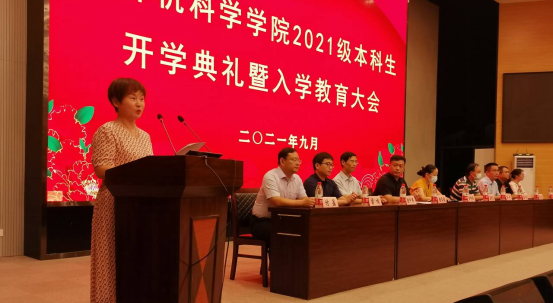 随后党委书记黄群俊发表讲话,她强调:21级新生作为与新时代同行的人,要做对国家有益、对社会有用、对自我有价值的人,要脚踏实地,一步一个脚印,用奋斗书写靓丽的大学生活。