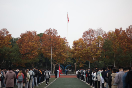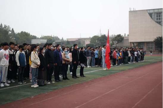 在东校区田径场举行了升国旗仪式暨“千班唱红歌,万人接力跑”活动。出席本次活动的有学院党委书记黄群俊、党委副书记颜学俊、学工办全体辅导员以及学院东校区的全体同学,升旗仪式由计科11904班张优主持。