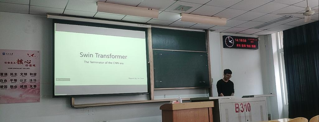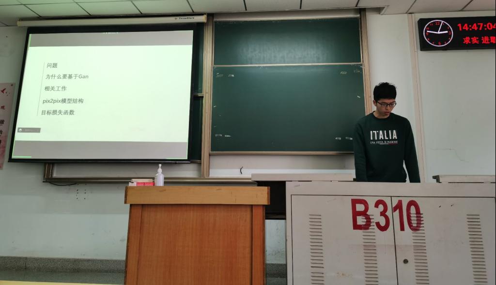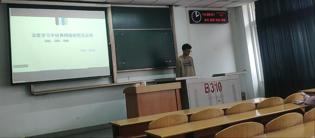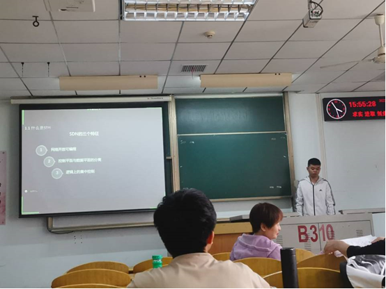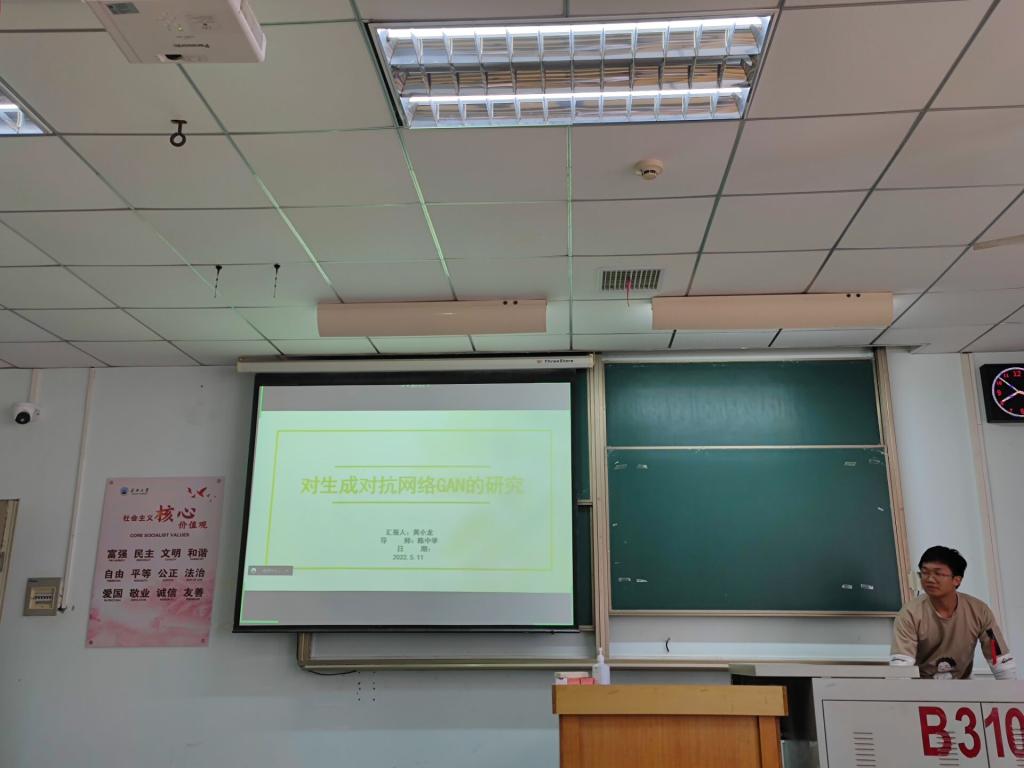 6位研究生依次登台演讲,分别围绕各自的研究方向,为同学们分享了6个课题:GAN、CNN、RNN神经网络及应用,新型网络架构-软件定义网络,Swin Transformer: The Terminator of the CNN Era,人工智能在智慧医疗中的应用,对抗生成网络,基于CNN的花卉分类检测算法研究等内容。学术论文报告会已经成为同学们交流研究方向、研究进展的重要途径之一。在演讲过程中,老师们和同学们耐心听学术汇报,记录对于自己研究的进展有用的信息。每名研究生演讲完后,导师从多个角度对演讲人的汇报进行仔细点评,对其研究内容可能遇到的科研困难进行指导,通过点评让汇报人知道了自己一些不足的部分,有利于研究的进行。