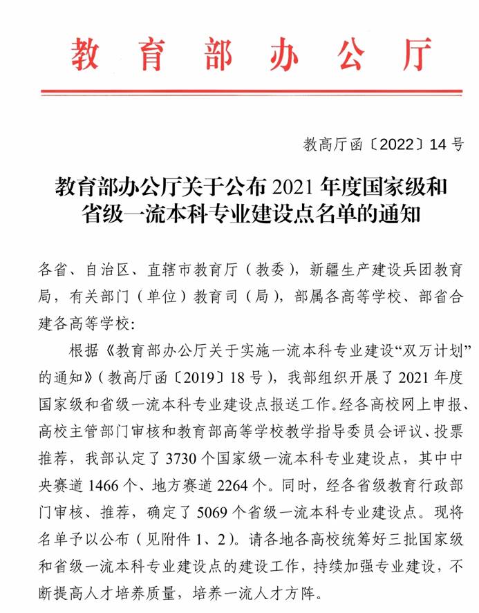 日前,教育部办公厅公布了2021年度国家级和省级一流本科专业建设点名单,成年人电影