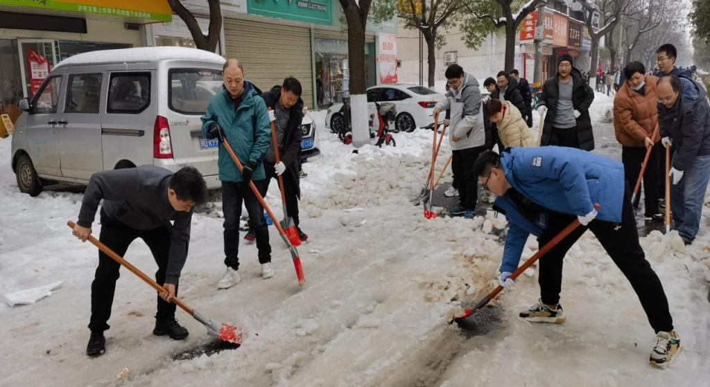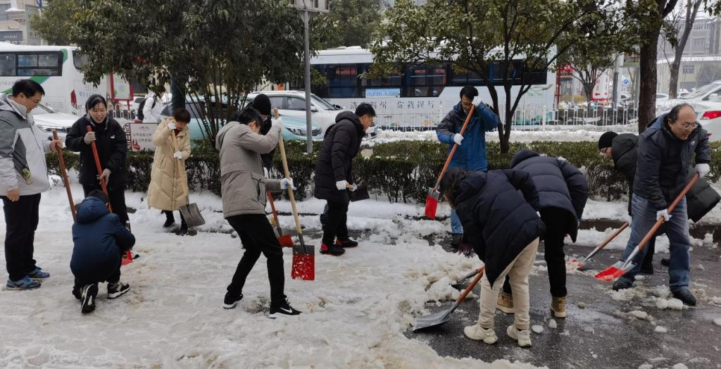 以雪为令,广大党员教师迅速集结,在院长、书记的带领下积极参加除雪破冰工作。