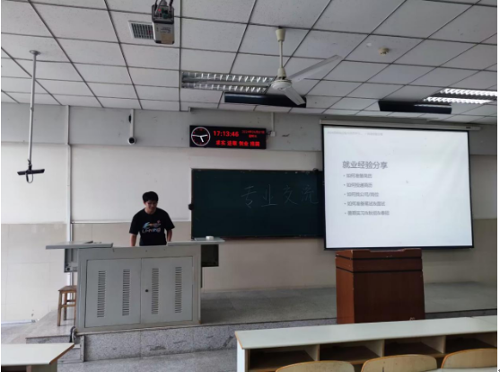 本次专业交流会分三个环节依次举行。首先,学院领导陈院长致活动开幕词,表示专业交流会是网络工程和信息安全专业的优良传统,每年都会邀请优秀的毕业生代表分享专业学习经验,目的是希望大家以身边的优秀学长学姐为榜样,养成良好的品质,明确学习目标,做好学习规划,努力学习专业知识,掌握过硬的本领,勇于追逐自己的梦想,未来为国家和社会做出积极的贡献。