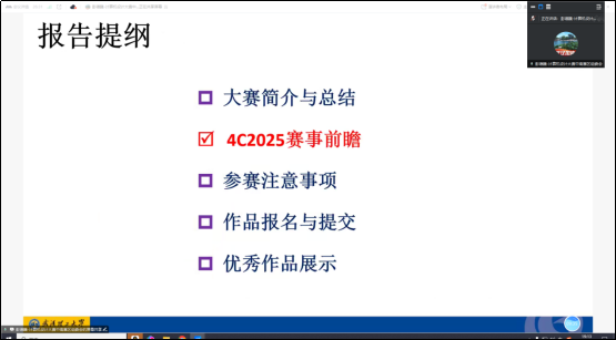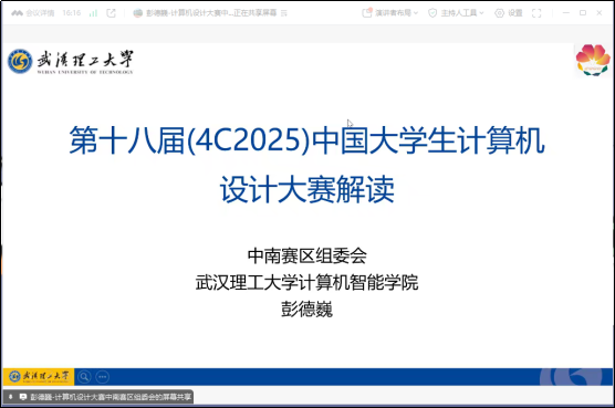 2025年3月26日,武汉理工大学彭德巍副教授在腾讯会议平台上为我校师生做了第十八届中国大学生计算机设计大赛赛事解析和参赛指导。本次会议由成年人电影