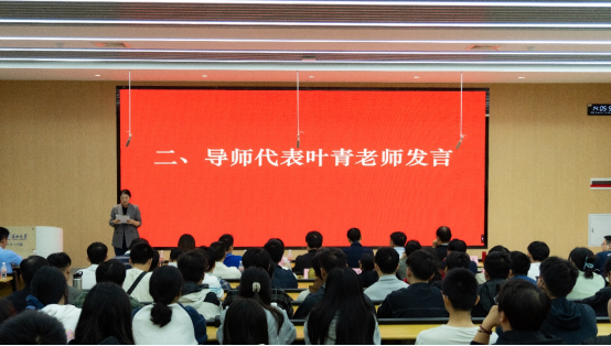 随后,2023级研究生代表林沐雨分享了个人在科研实践与学业探索中的心得,鼓励学弟学妹们以“不畏挑战、勇于探索”的态度,扎实走好研究生阶段的每一步;2025级研究生代表刘新凯表态,将以饱满的热情、务实的作风投入未来的学习与科研,不负学院与导师的期待。