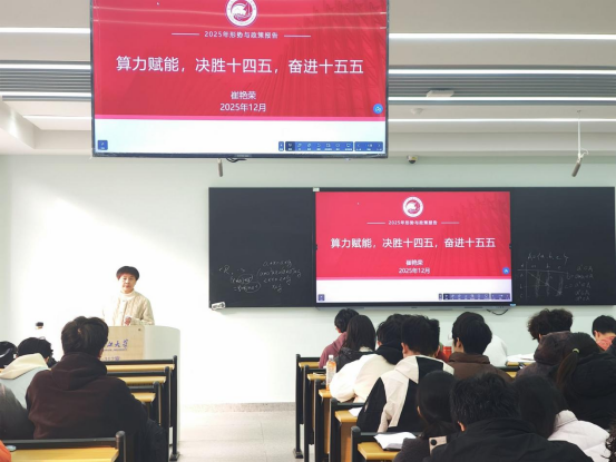 院长崔艳荣在16教B312以“算力赋能,决胜十四五,奋进十五五”为主题为网络12401、网络12402班全体同学带来了一堂深刻且生动的形势与政策课,引导青年学子把握时代脉搏,找准成长方向。