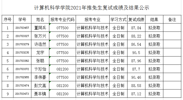 按照学校2021年接收优秀应届本科毕业生免试攻读硕士研究生复试录取工作安排,现将成年人电影 推免生复试成绩及结果予以公示如下: