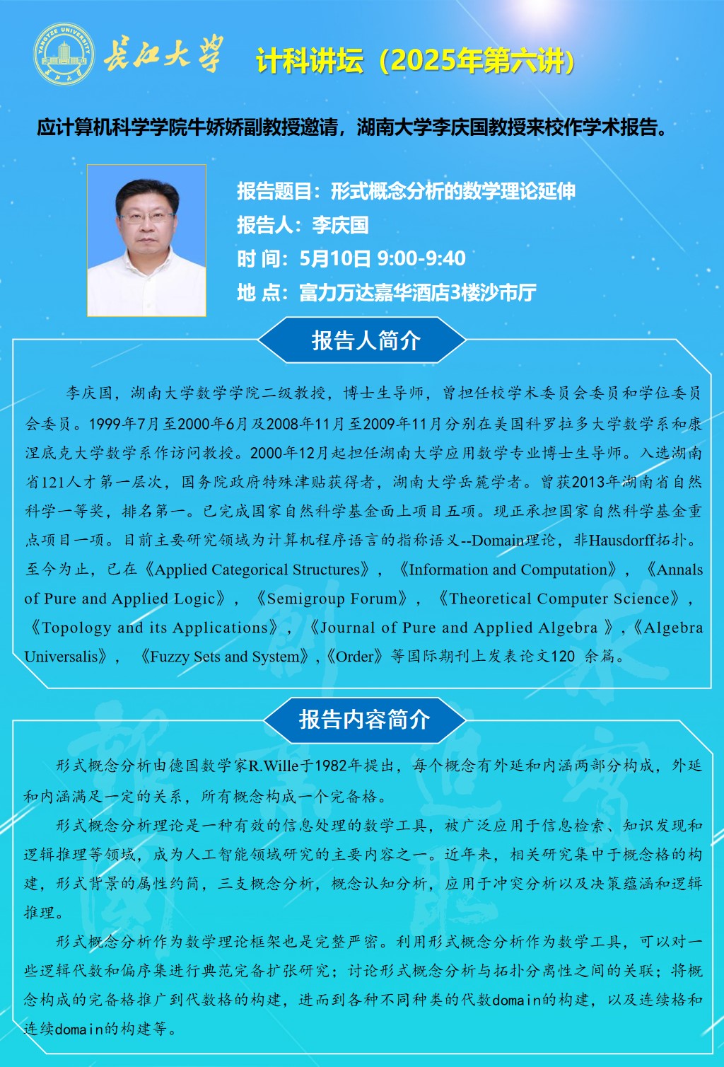 计科讲坛(2025年第六讲):形式概念分析的数学理论延伸