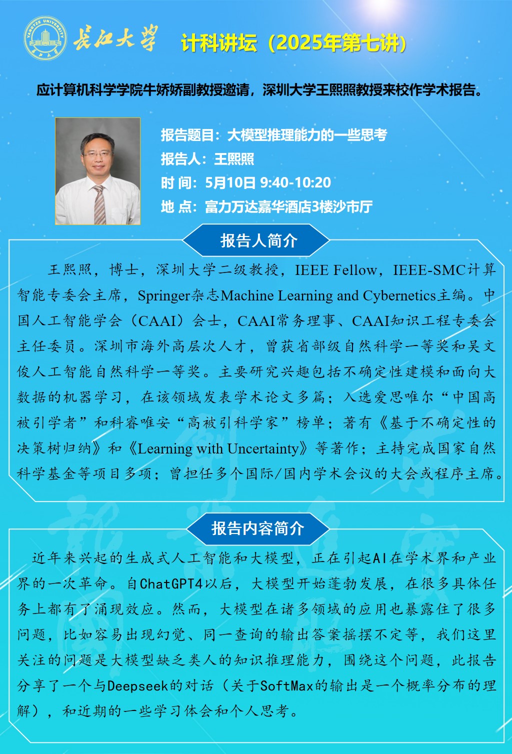 计科讲坛(2025年第七讲):大模型推理能力的一些思考