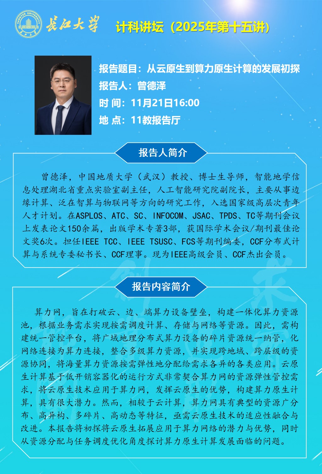 计科讲坛(2025年第十五讲):从云原生到算力原生计算的发展初探
