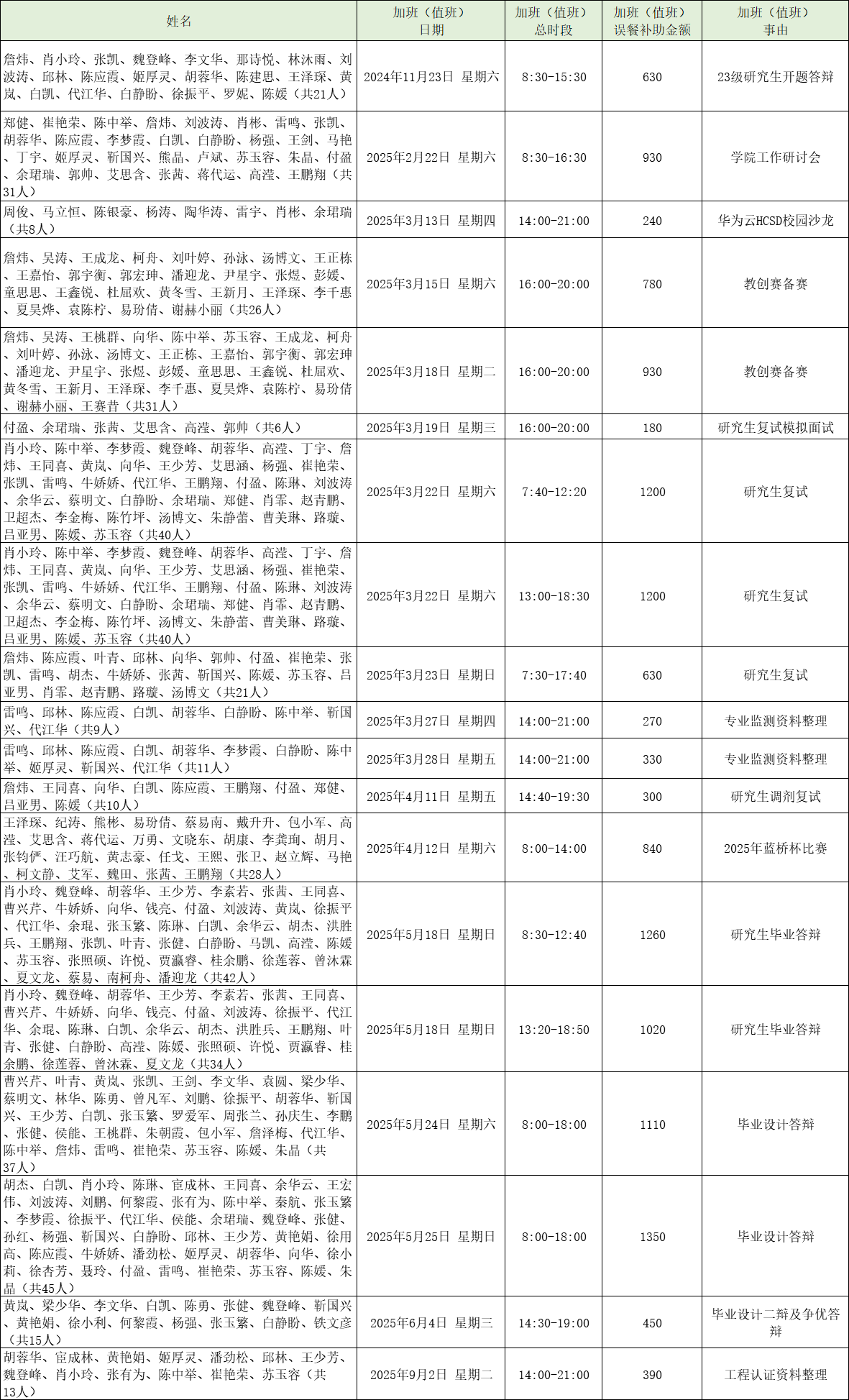 2025年研究生招生等工作加班(值班)误餐情况公示