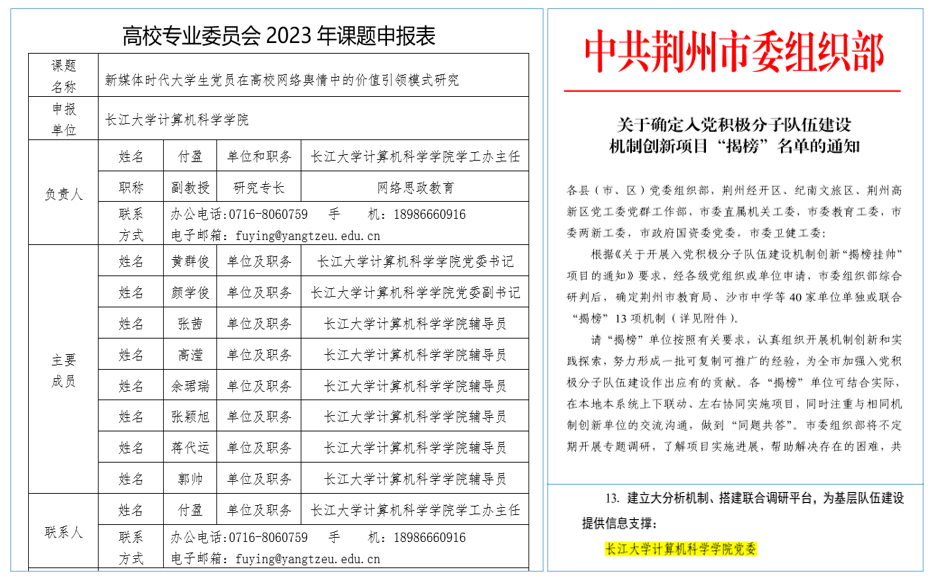 校友会”;围绕本科教育教学改革,学院认真组织第三届湖北省高校教师教学创新大赛备赛,并荣获中级及以下组三等奖。黄岚副教授主讲《数据挖掘》获批国家级一流线上线下混合本科课程。新专业智能科学与技术获批设置。