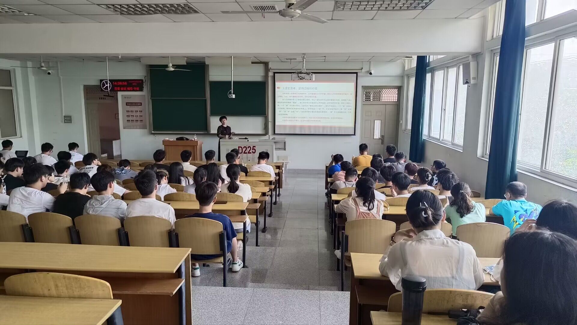 院长崔艳荣以《从ChatGPT人工智能看科技创新》为题作形势与政策报告,学院全体一年级研究生参会。