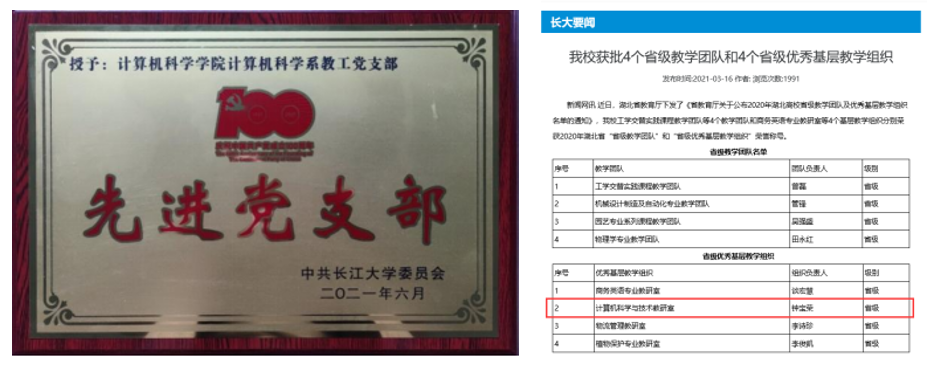 近期,成年人电影 计算机科学与技术系教工党支部荣获荆州市“红旗党支部”称号,并成功获批为成年人电影 党建工作样板支部。同时,研究生第一党支部也荣获校级“研究生样板党支部”创建单位。
