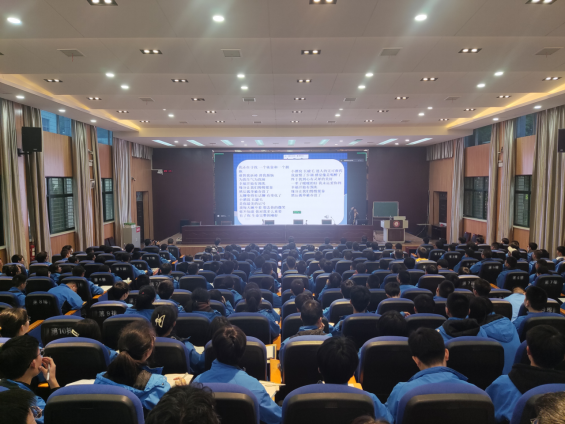 沙洋中学校领导对学院来访表示了热烈欢迎,在短暂的交流之后,郑老师来到沙洋中学报告厅开展心理健康教育讲座。沙洋中学副校长王亿祥、德育处主任张涛、信息部主任金平华,部分班主任代表及300余名学生现场参加了此次讲座,另有1000余名学生在各自教室集中线上参与。本次讲座的主题为:把爱珍藏心底——高中男女生交往,沙洋中学德育处主任张涛主持会议。